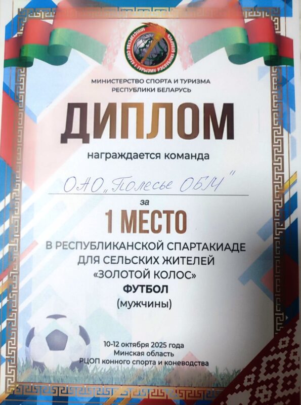 Футбольная команда из нашего района «Полесье ОБМ» представляла честь Брестской области в соревнованиях по футболу и заняла 1 место!