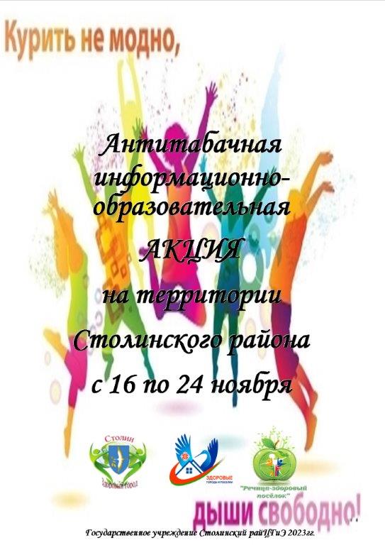 Новости Столина, Столин-здоровый город Курить не модно — дыши свободно! Posted on Январь 29, 2024 by RFSKSTOLIN 29 Янв Антитабачная информационно-образовательная АКЦИЯ на территории Столинского района с 16 по 24 ноября! Открытие катка ФОК «Коммунальник»! Турнир среди ветеранов физической культуры и спорта!